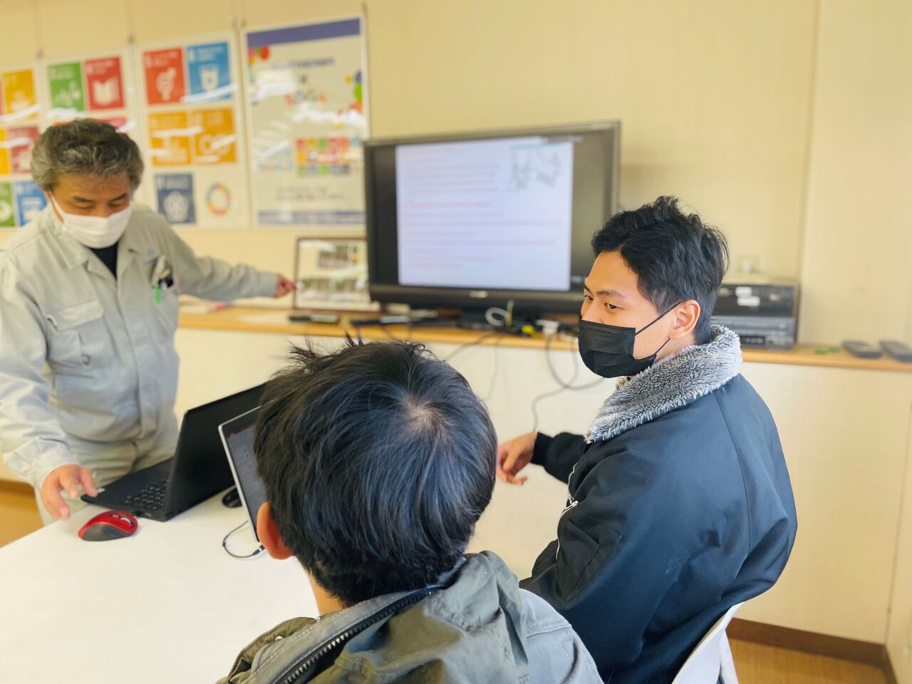 ⇒教育内容の翻訳をしたり、海外実習生の面談や指導を主におこなっています。